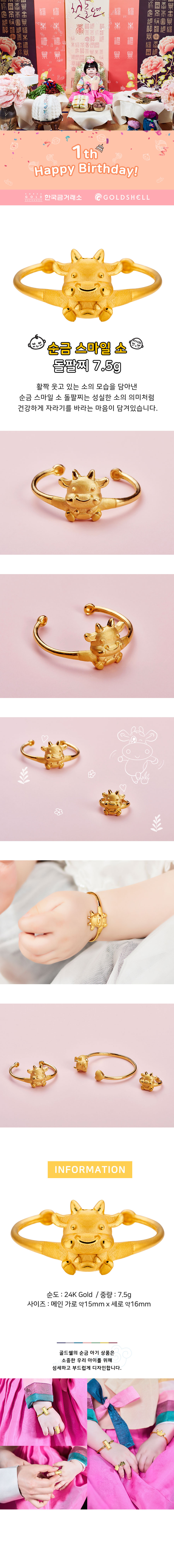 순금 스마일 소 돌팔찌 7.5g
